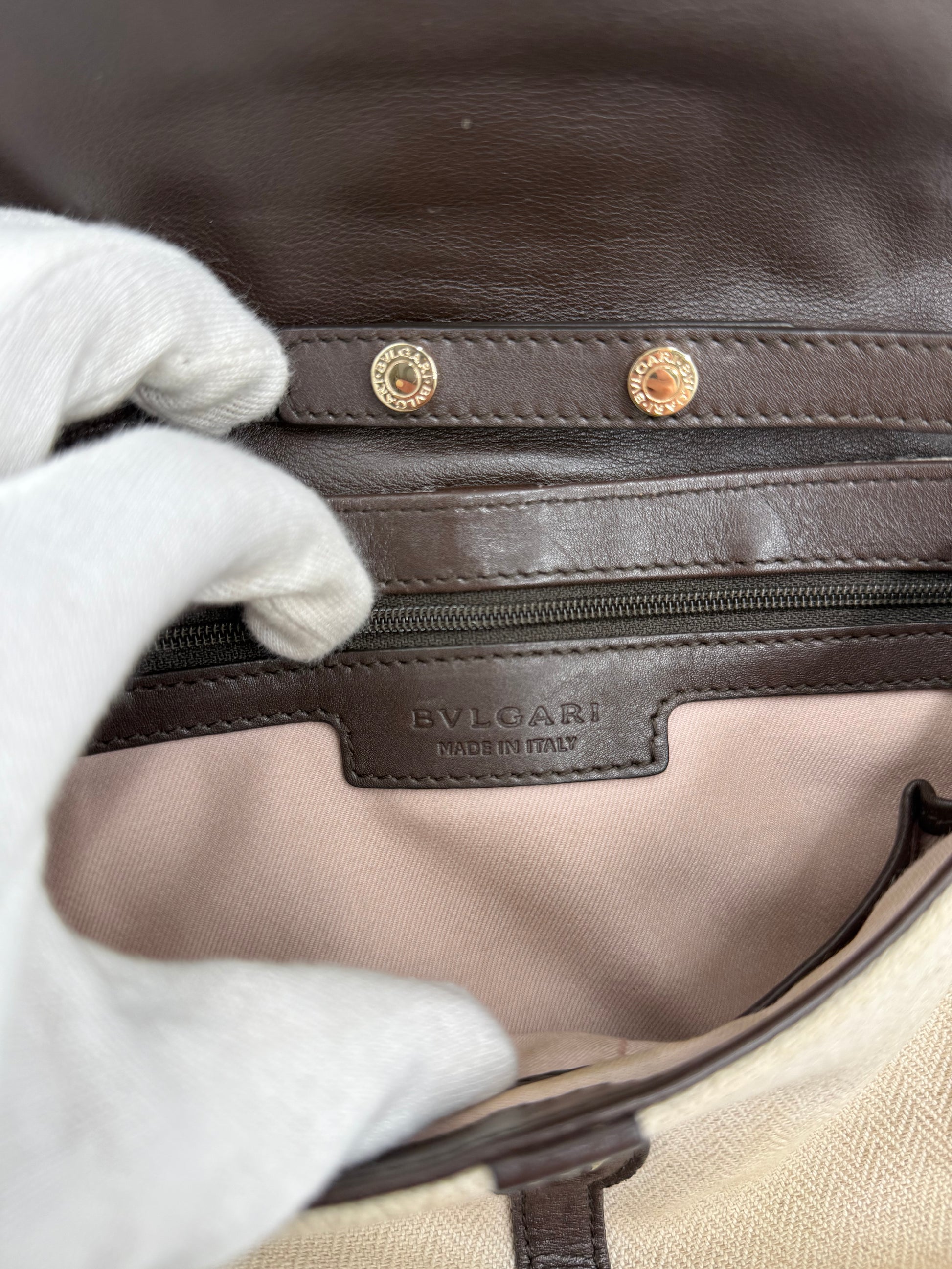 Bulgari Borsa a Spalla in Tela Chevron e Pelle Marrone