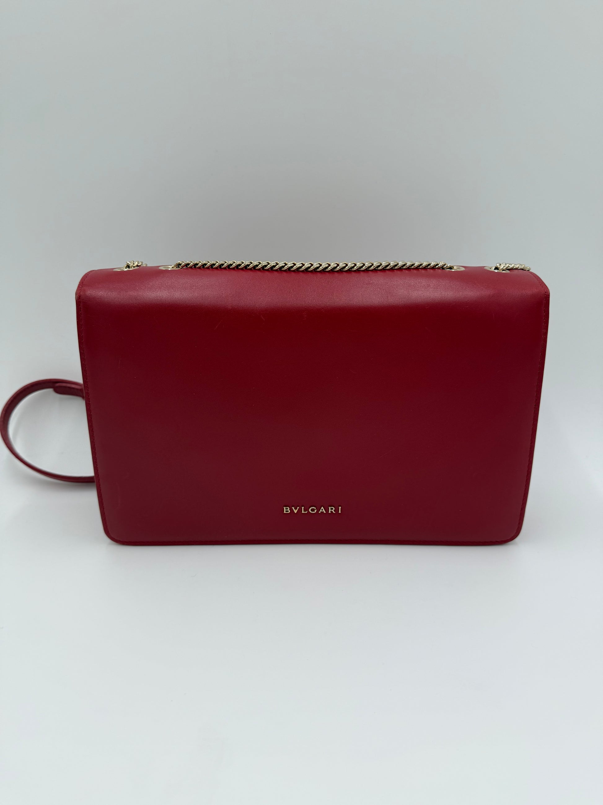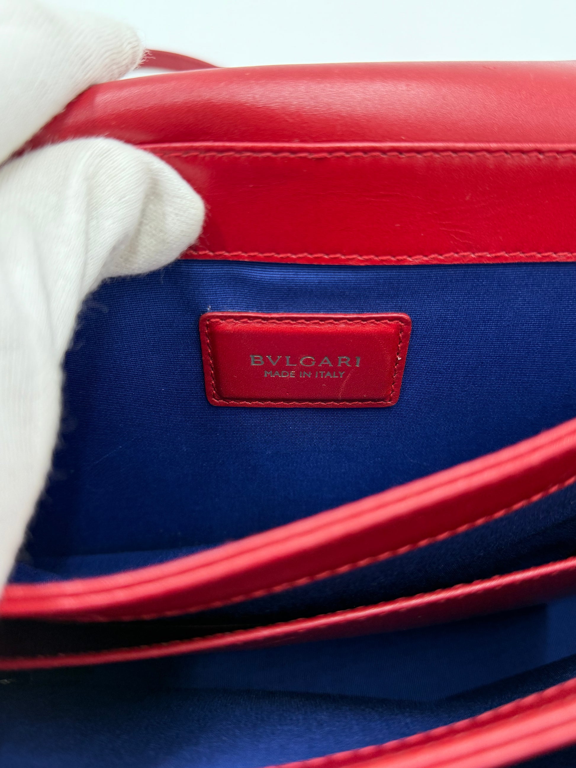 Bulgari Borsa Flap a Spalla in Pelle Rossa e Perspicio Nero