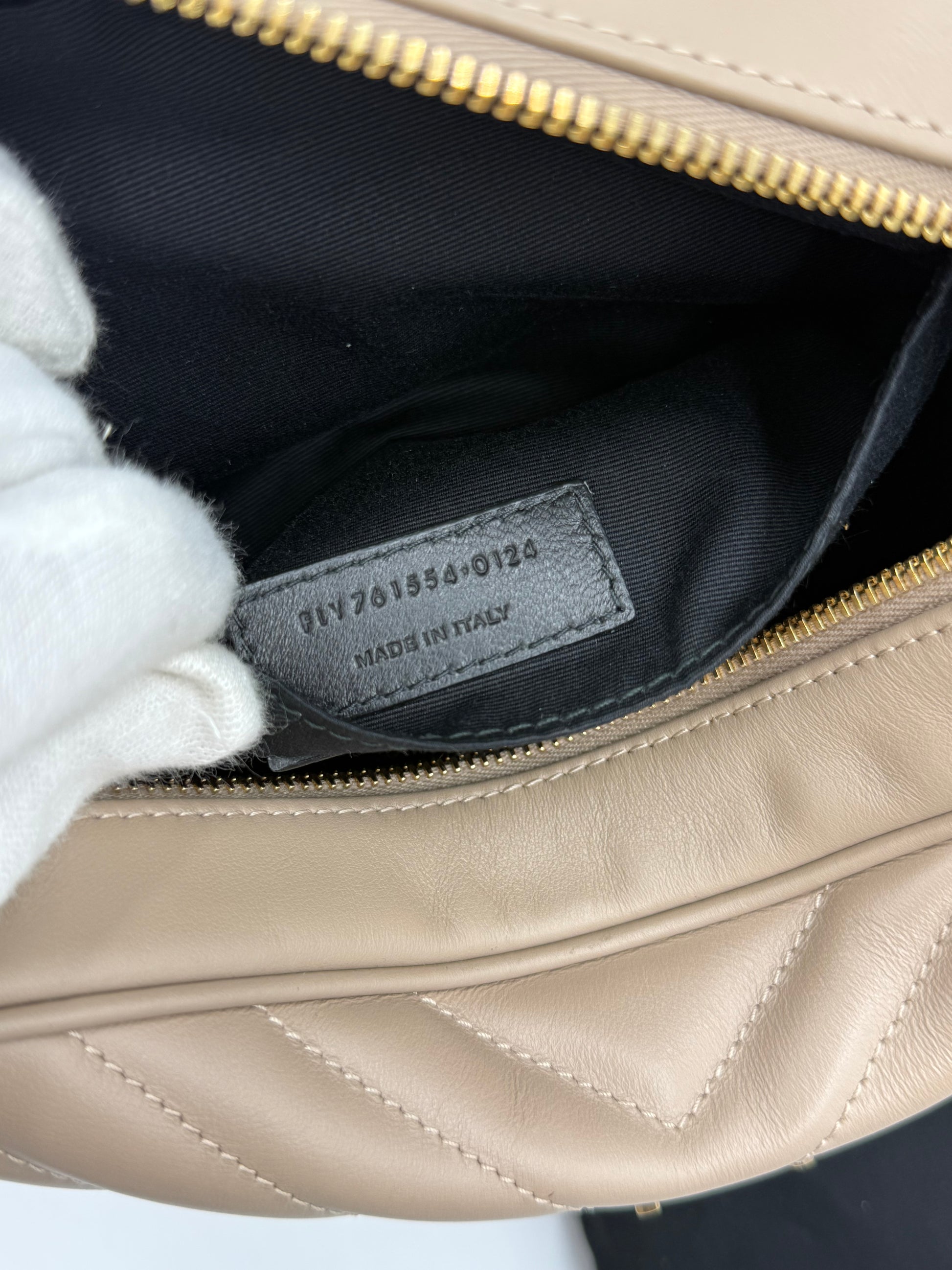 Saint Laurent Borsa Lou Camera Beige. Il modello è realizzato in pelle matelassé con dei dettagli in oro anticato e il logo YSL degli anni ‘60. Dotata di una tasca piatta sul retro e di una tracolla rimovibile e regolabile. Chiusura con zip, interno foderato in gros-grain a scomparto unico con tasca. Venduta con dustbag originale e autenticazione Autenticate First.